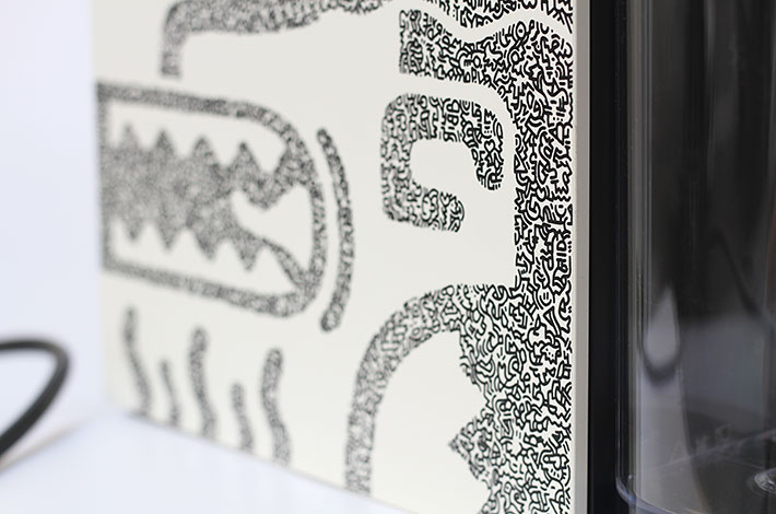 Étrange moment que la pause café qui lie la détente à un un psychotrope censé favoriser la performance et la productivité. Ici, RIMP souligne la dichotomie du terme et fait naitre sur l’objet un avant/après pause café. À gauche, rondeur, douceur et répit. À droite, nervosité, arrêtes saillantes et tranchantes.